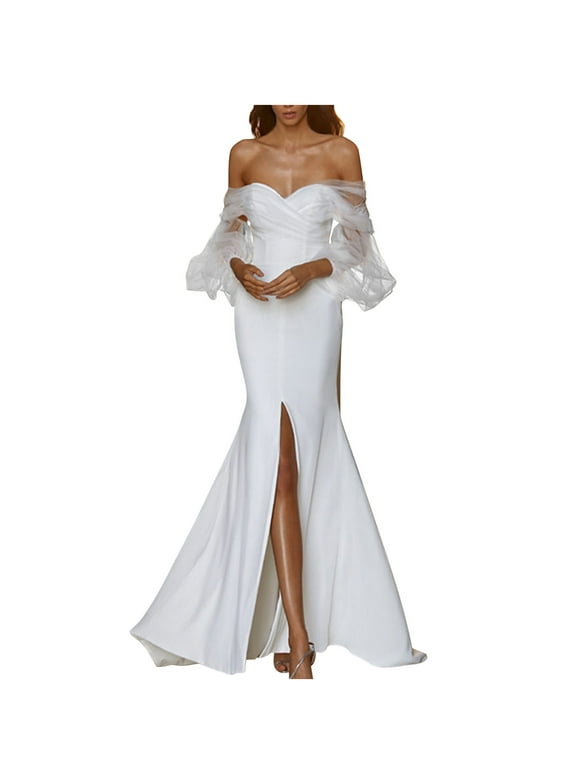 Amazon Com Junytding Women Tulle Puffy Long Sleeves Prom Dresses Off The Shoulder Formal Evening Party Gowns With Slit Ld0101 Aqua 2 Clothing Shoes Jewelry